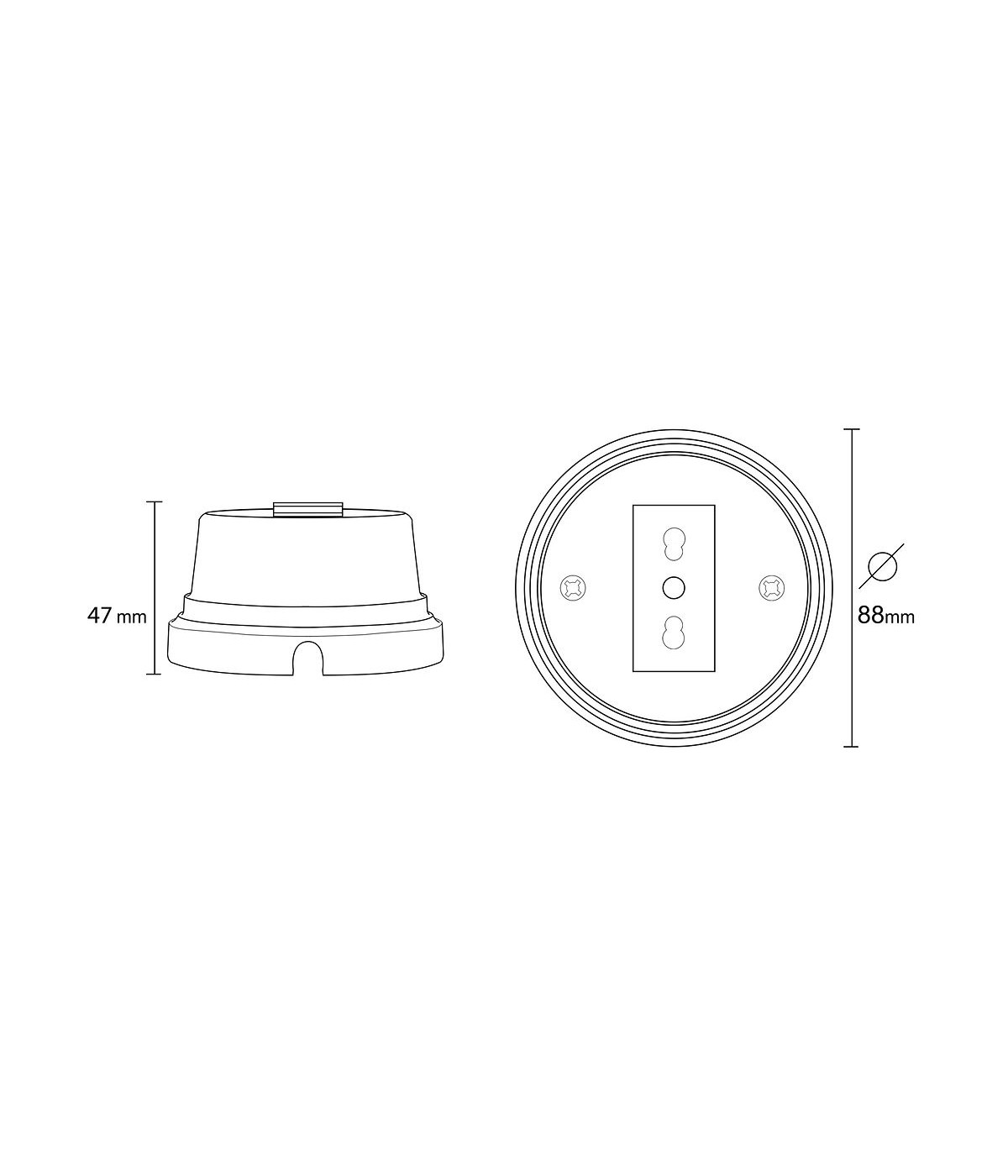 The cover in porcelain has two input/output holes for cables with a maximum diameter of 10mm.