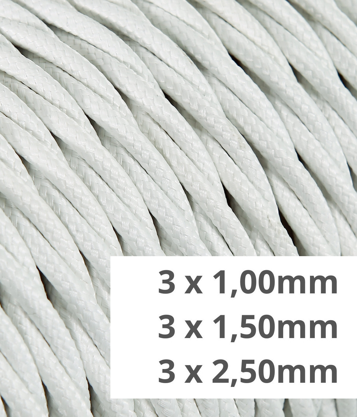 Câble électrique flexible torsadé pour installations apparentes vintage gainé de tissu coloré blanc