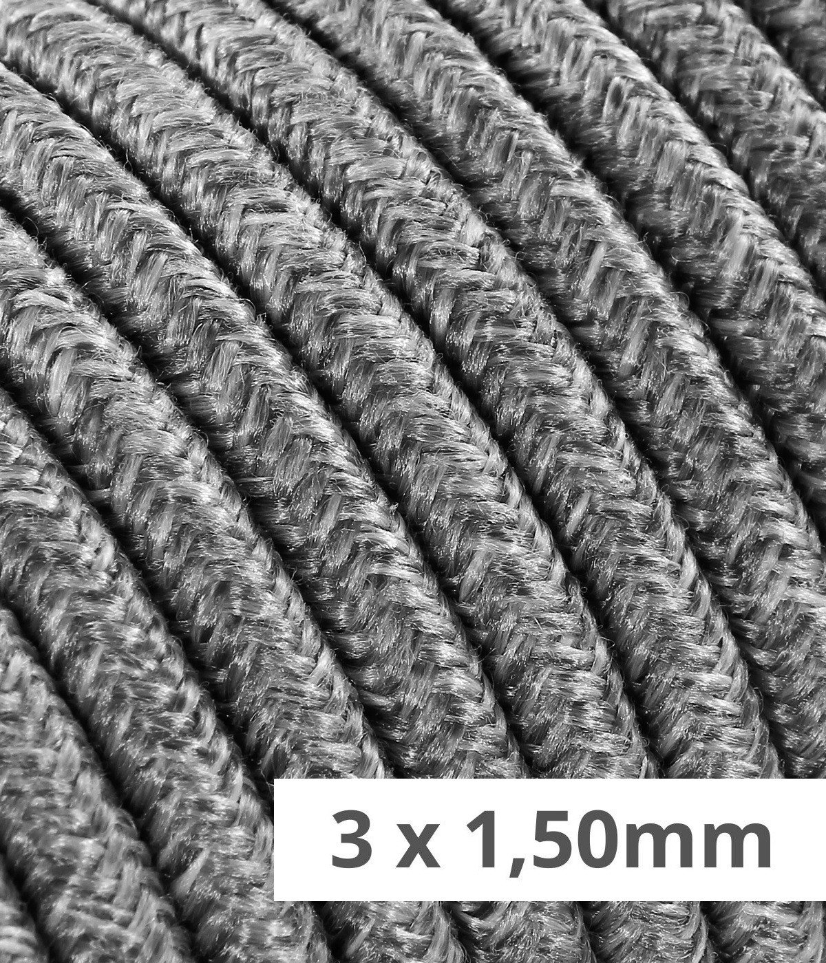 Câble électrique flexible rond gainé de tissu coloré toile gris d'une section de 3x1,50.
