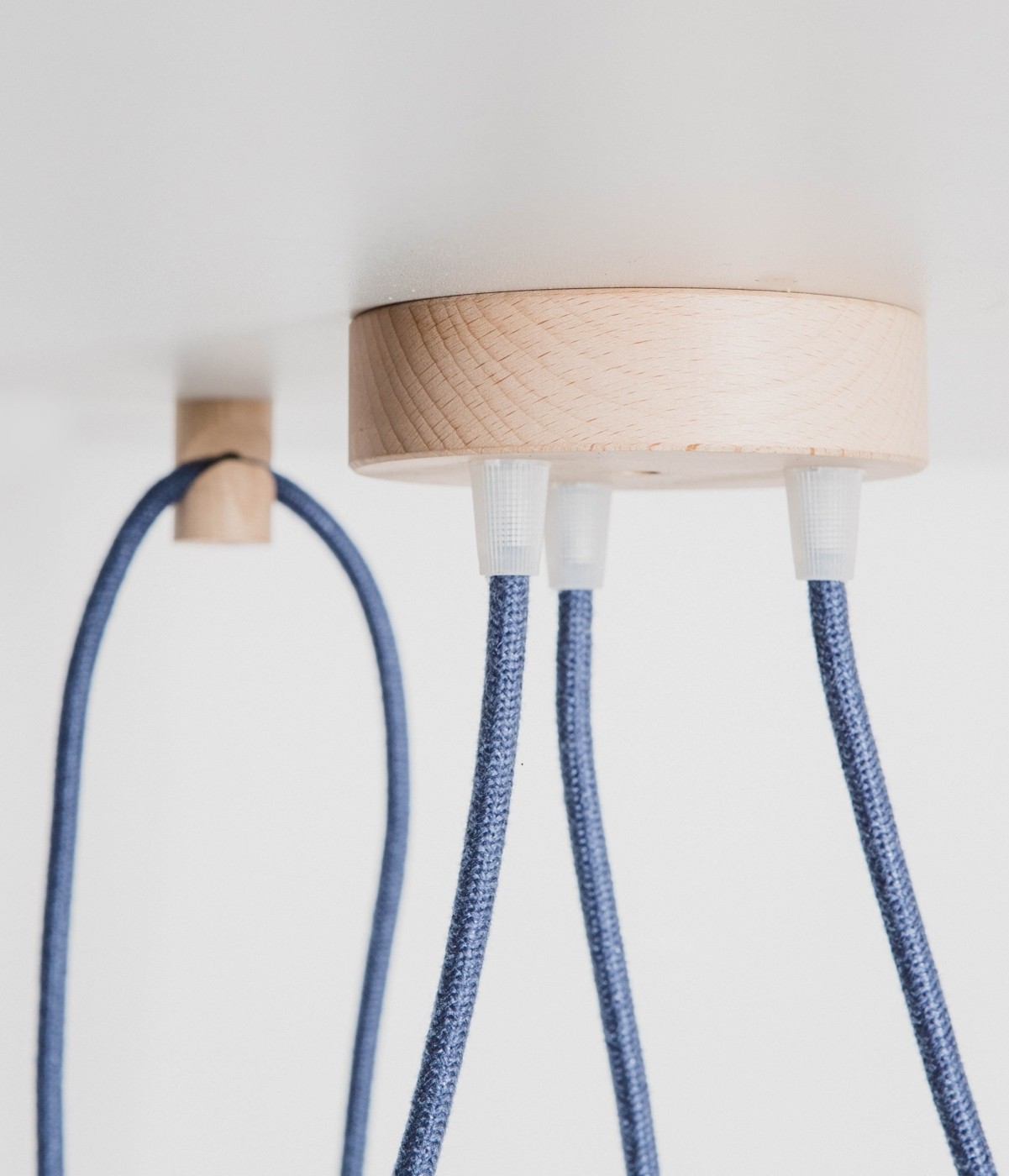 Crochet de décentralisation en bois à peindre pour la fixation au mur ou au plafond de câbles avec Ø maximum de 7,4 mm.