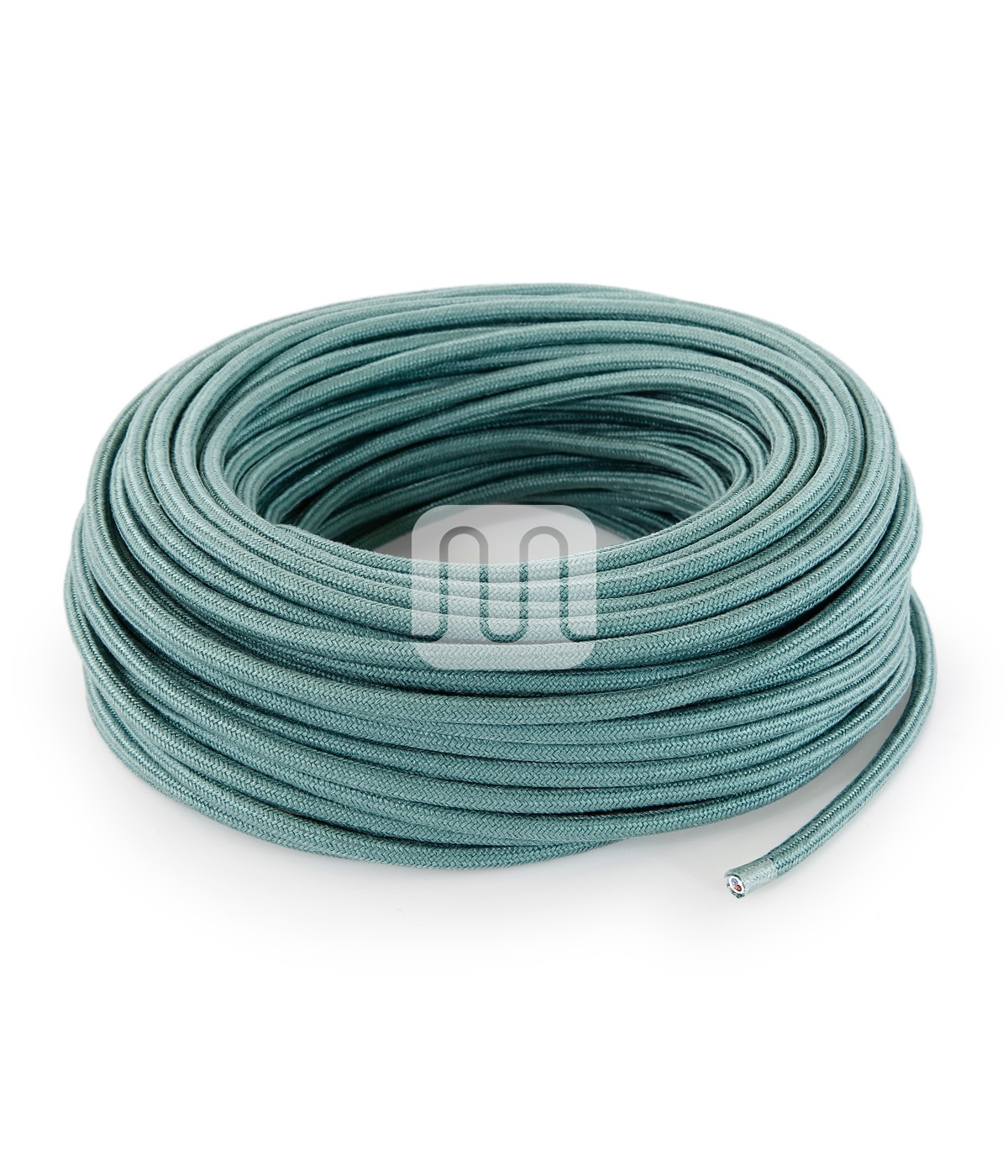 Câble électrique flexible rond gainé de tissu fil brut coloré sauge.