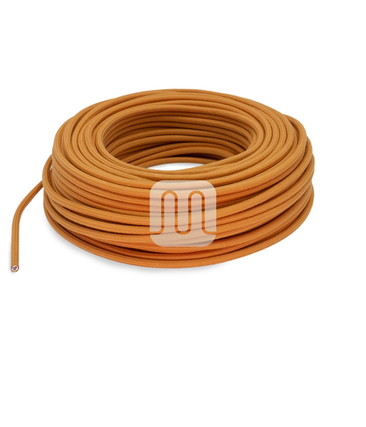 Câble électrique flexible rond gainé de tissu fil brut coloré caramel