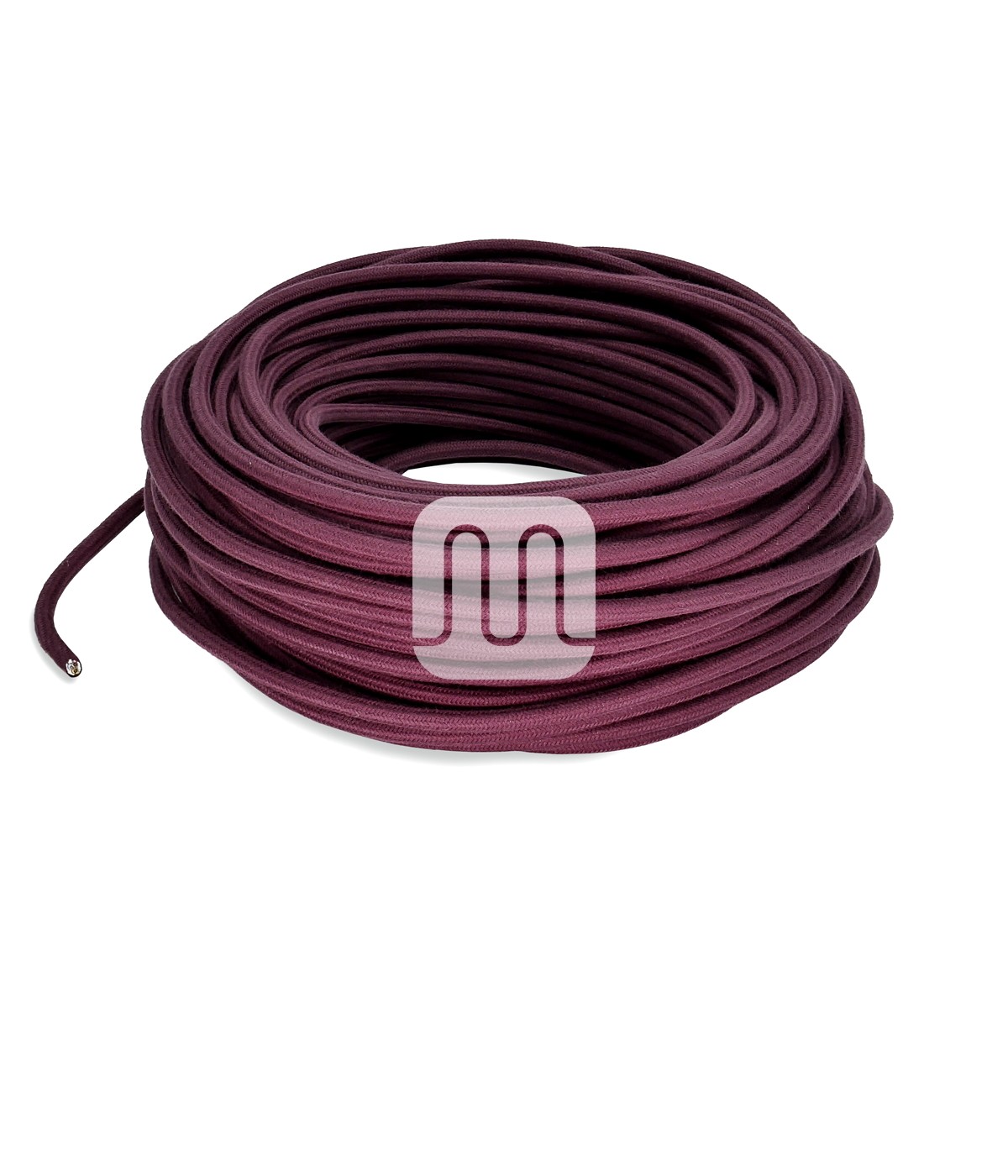 Câble électrique flexible rond gainé de tissu fil brut coloré aubergine.