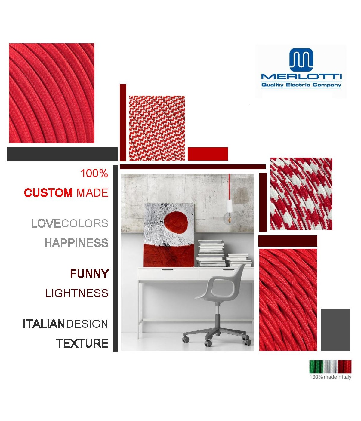 Câble électrique flexible rond gainé de tissu coloré rouge