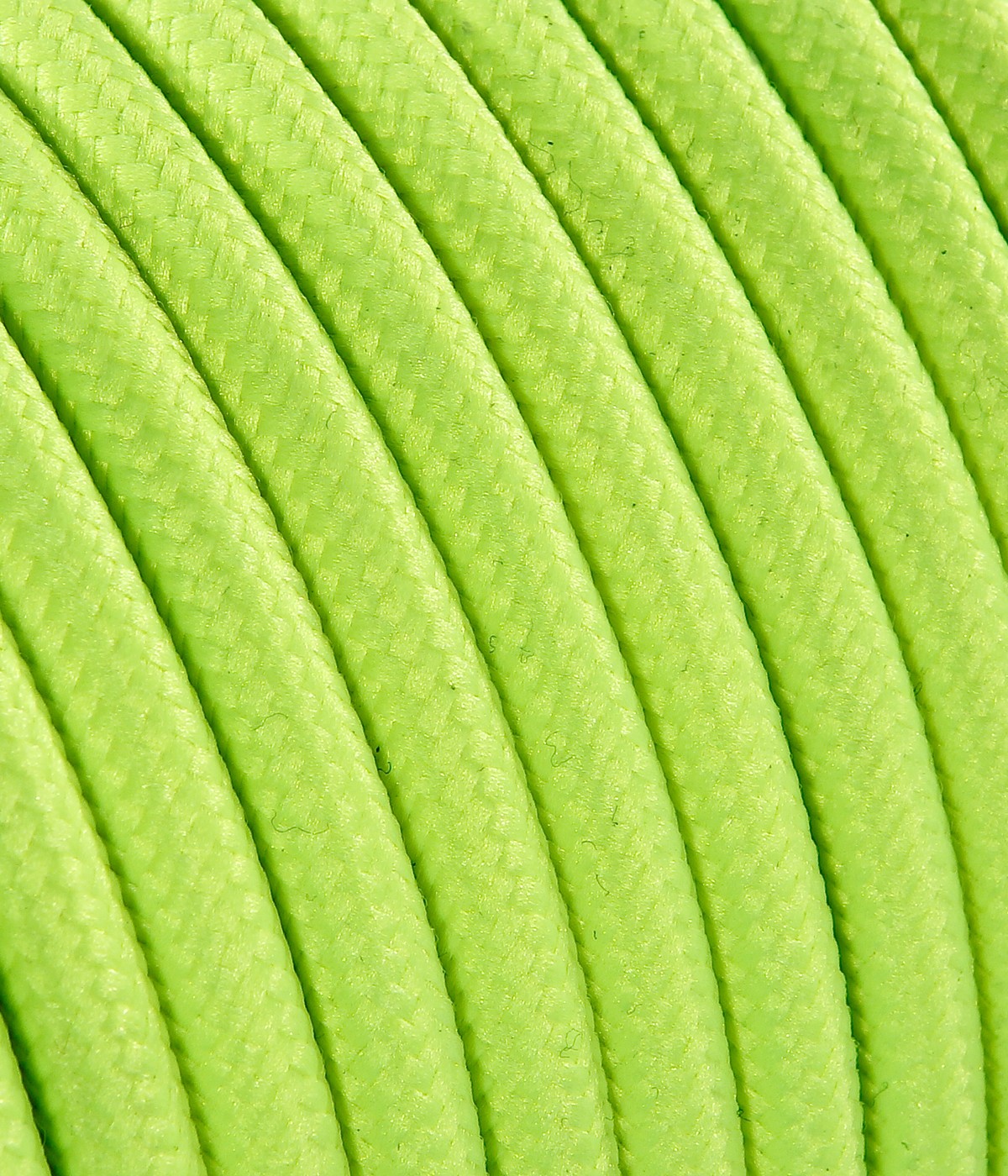 Cavo elettrico flessibile tondo rivestito in tessuto colorato giallo fluo.