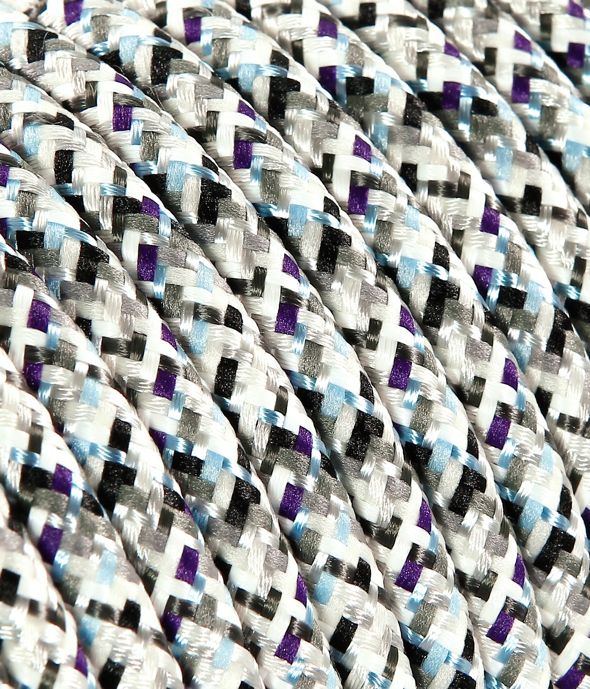 Cavo elettrico flessibile tondo rivestito in tessuto colorato fantasia pixel ghiaccio.