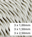 Cavo elettrico flessibile trecciato per impianti vintage a vista rivestito in tessuto colorato avorio.