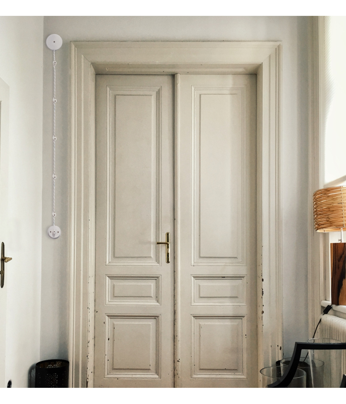 Cavo elettrico flessibile trecciato per impianti vintage a vista rivestito in tessuto colorato bianco.