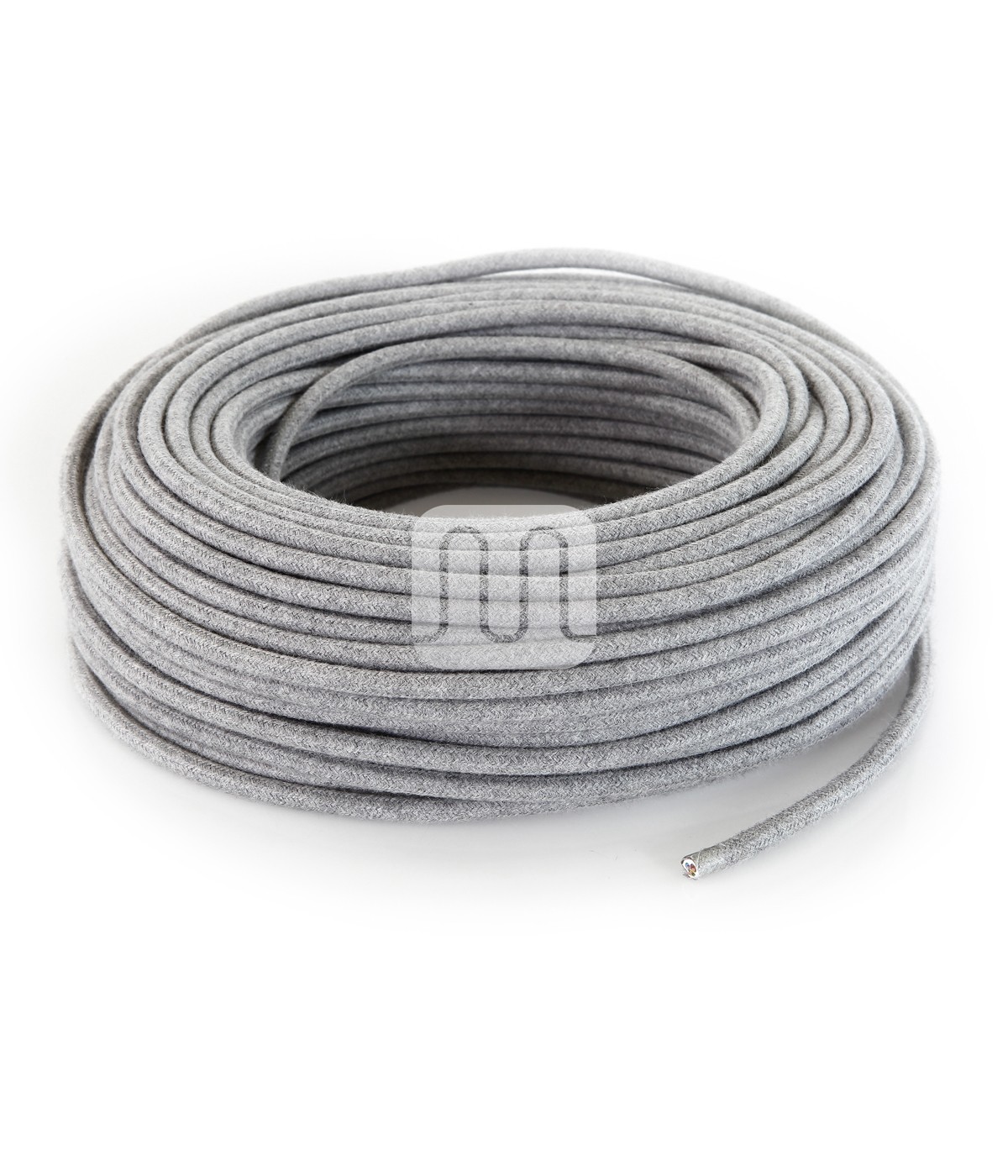 Cavo elettrico flessibile tondo rivestito in tessuto colorato filato grezzo grigio.