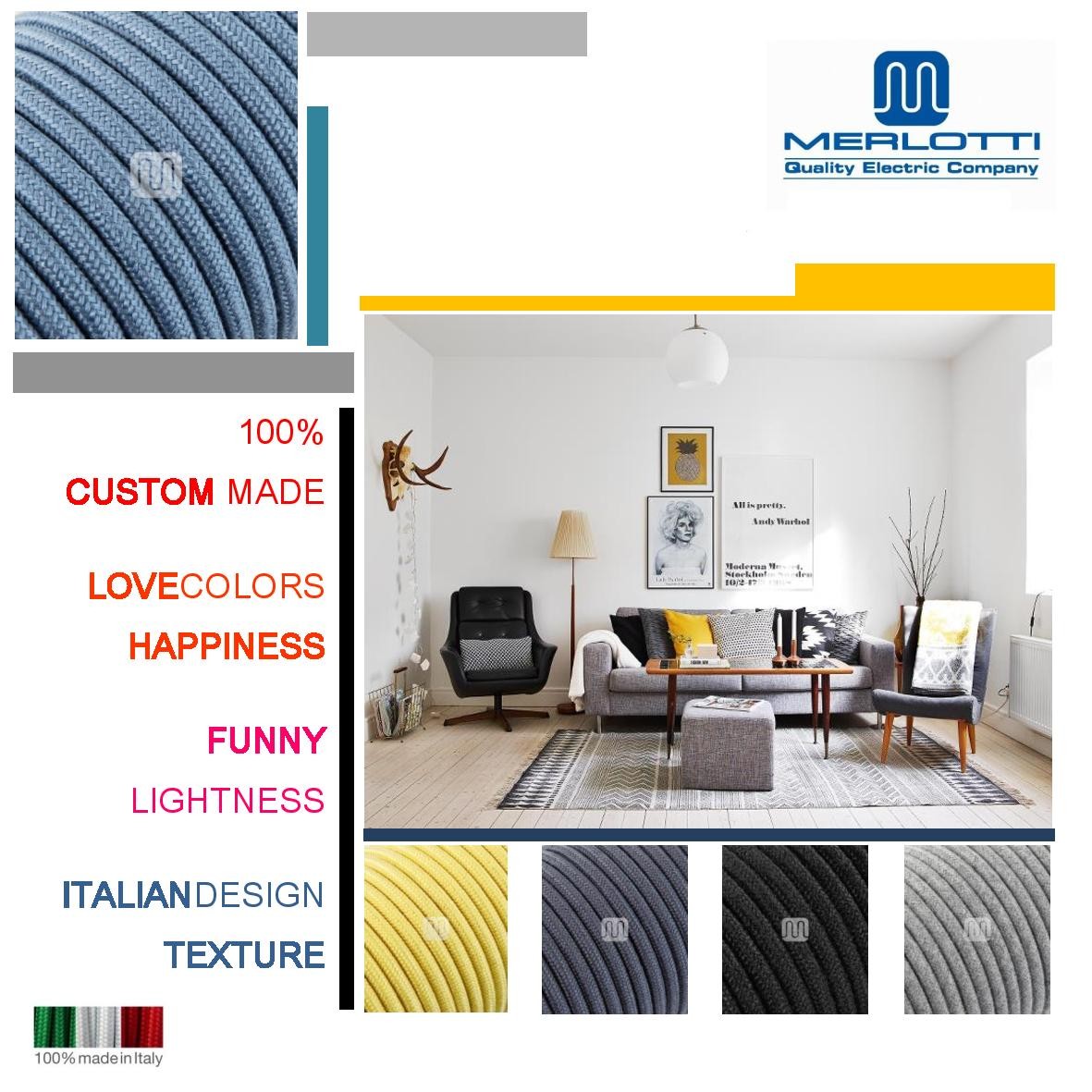 Cavo elettrico flessibile tondo rivestito in tessuto colorato filato grezzo avio.