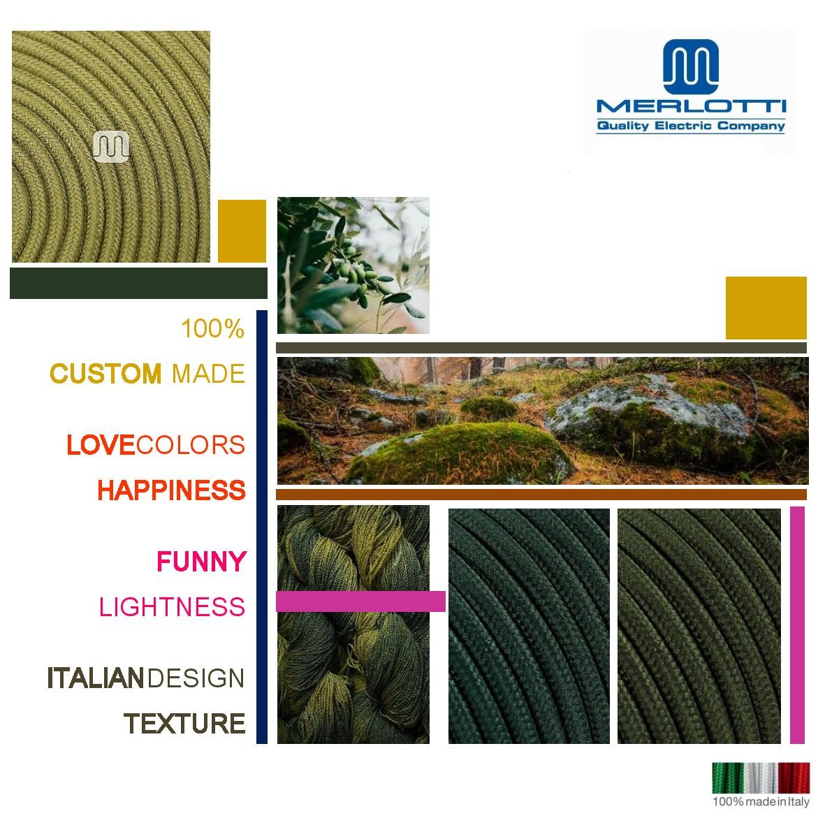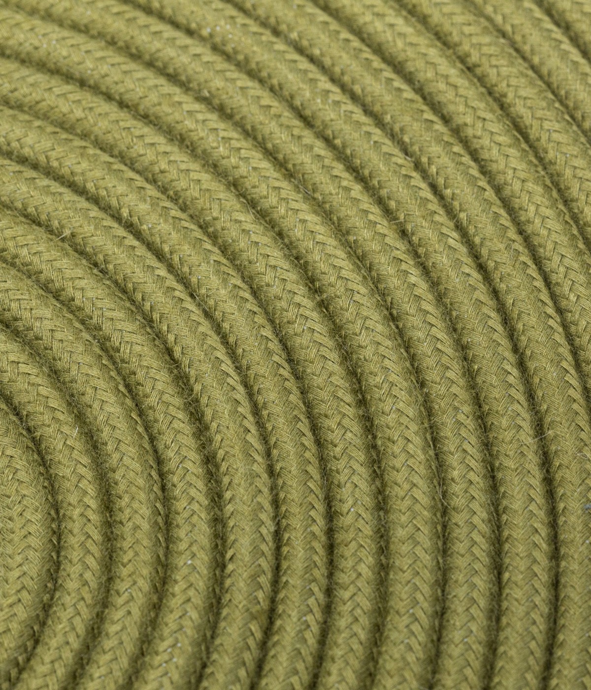 Cavo elettrico flessibile tondo rivestito in tessuto colorato filato grezzo oliva.