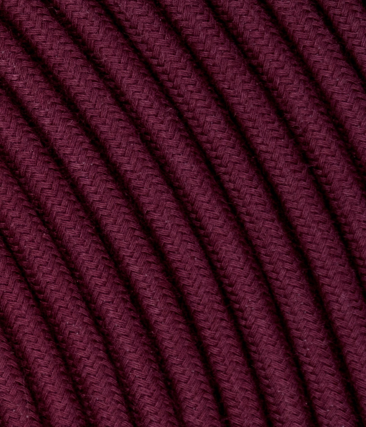 Cavo elettrico flessibile tondo rivestito in tessuto colorato filato grezzo melanzana.