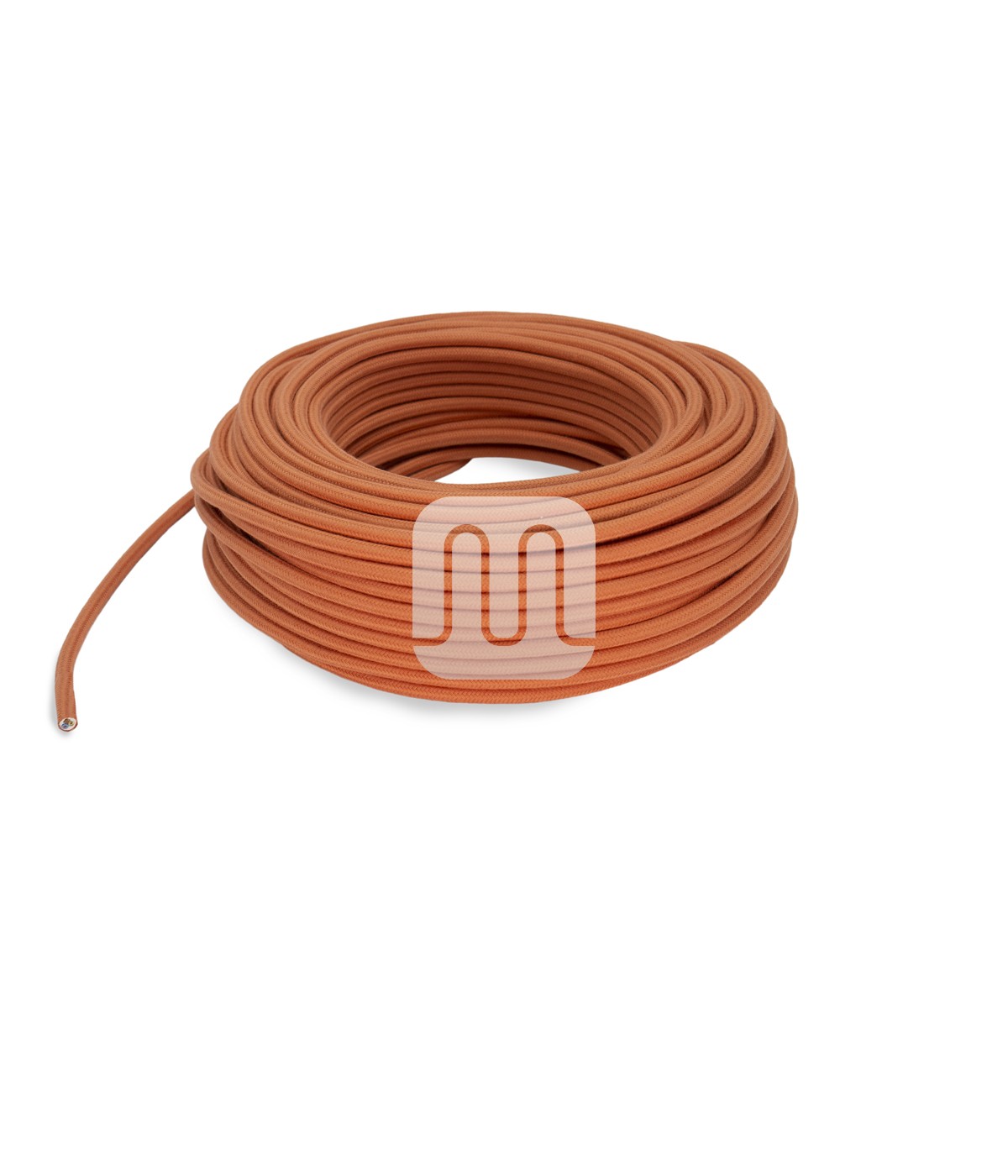 Cavo elettrico flessibile tondo rivestito in tessuto colorato filato grezzo salmone.