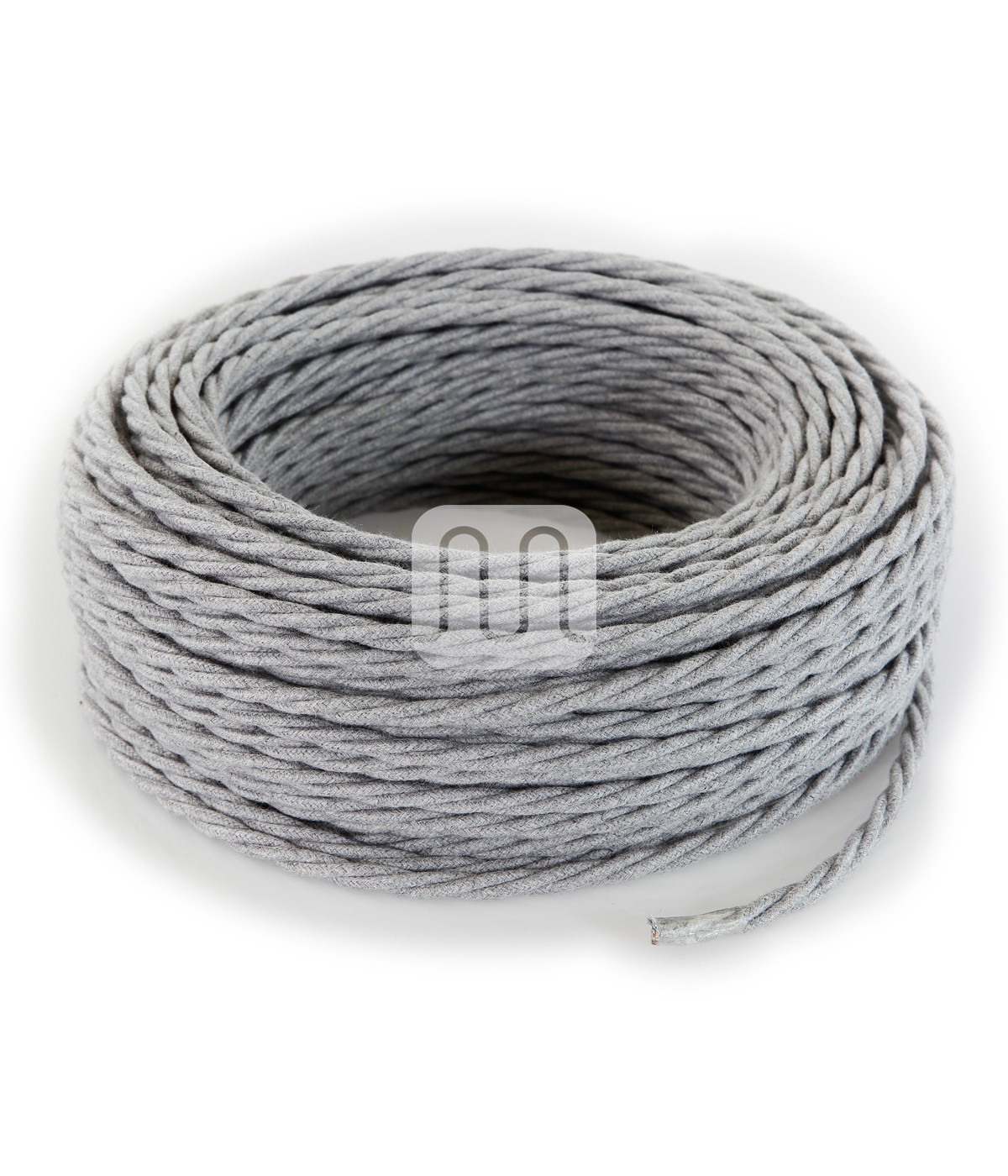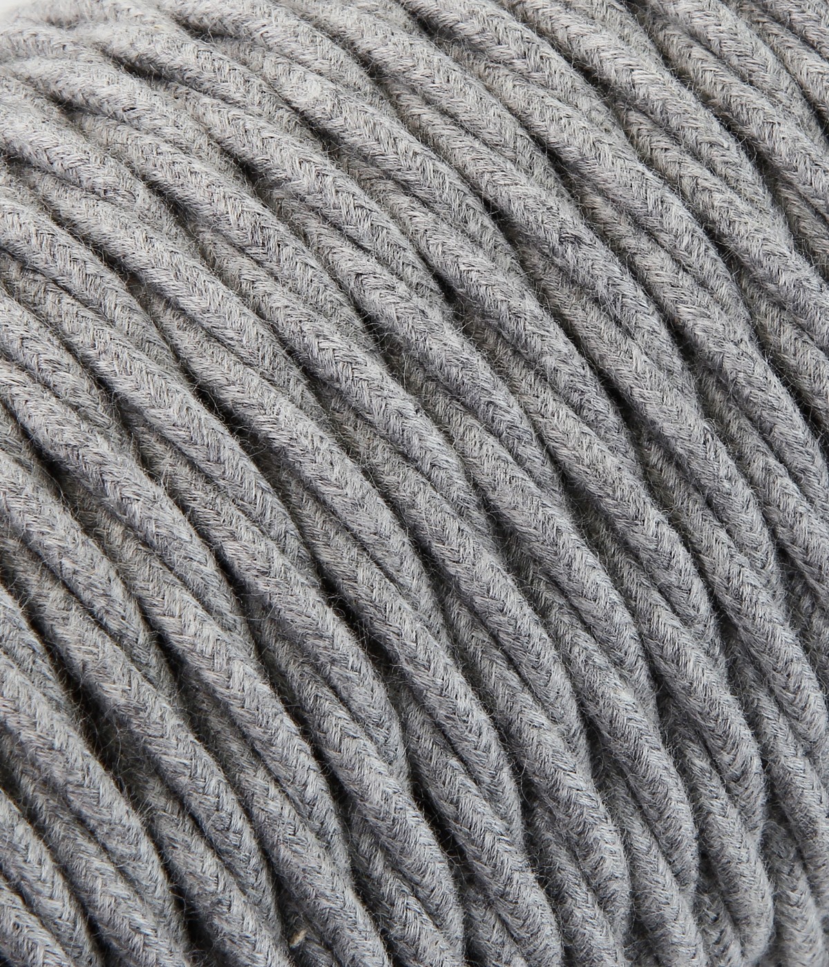 Cavo elettrico flessibile trecciato rivestito in tessuto filato grezzo colorato grigio.