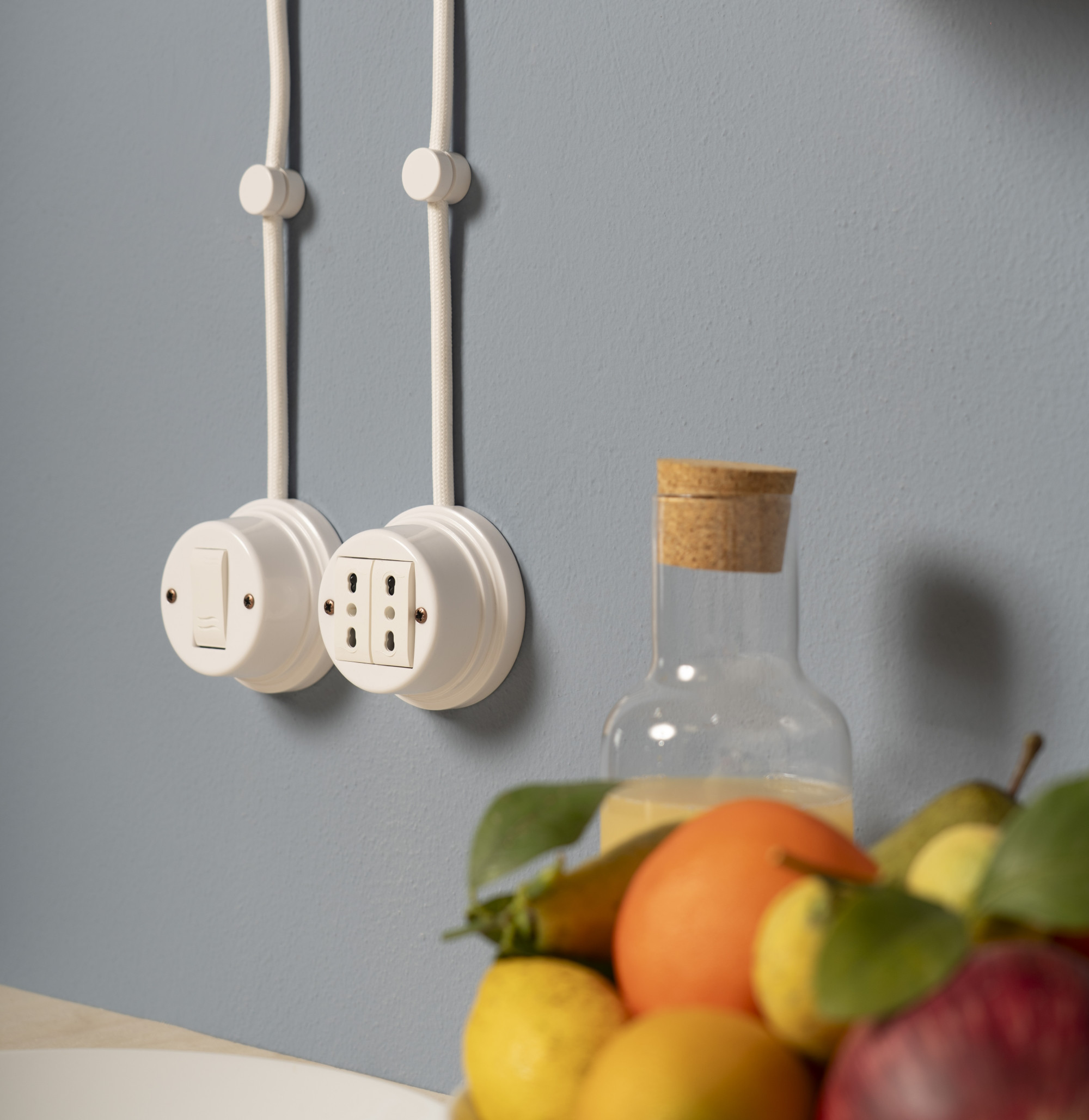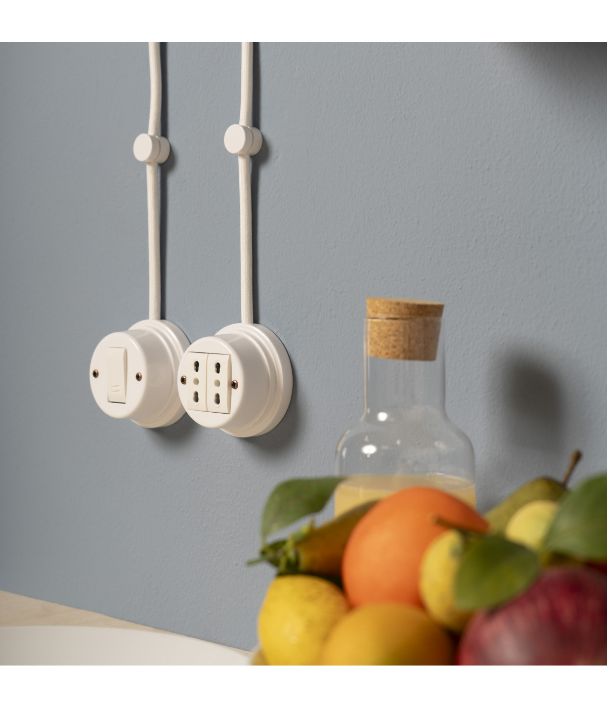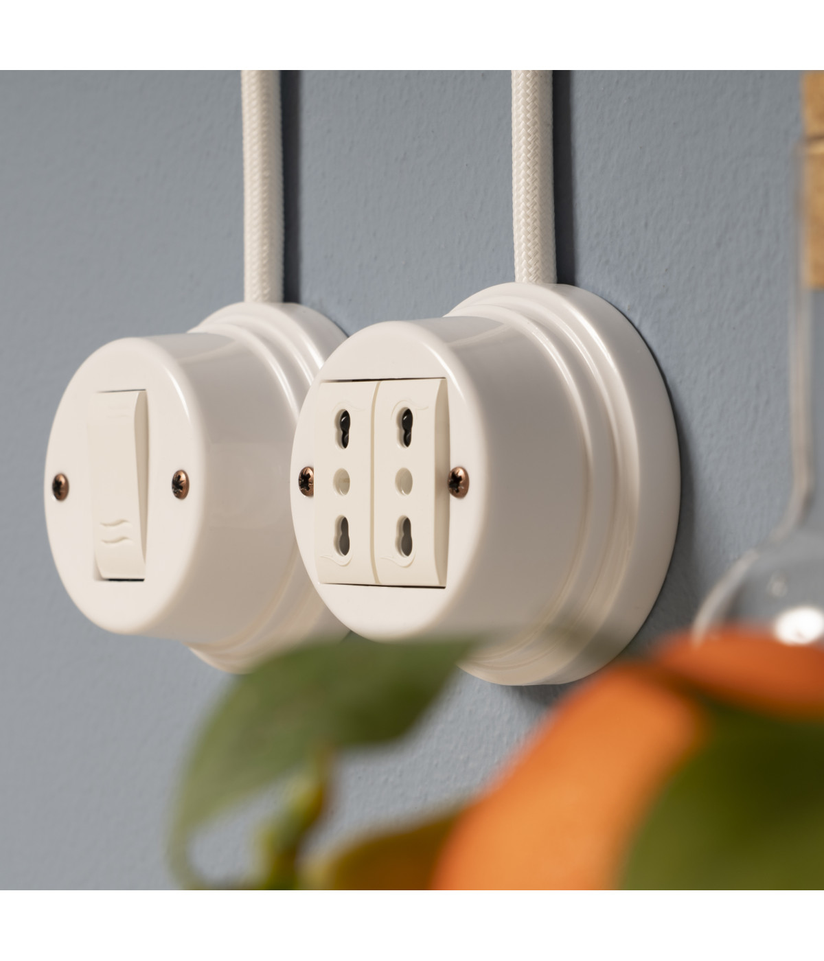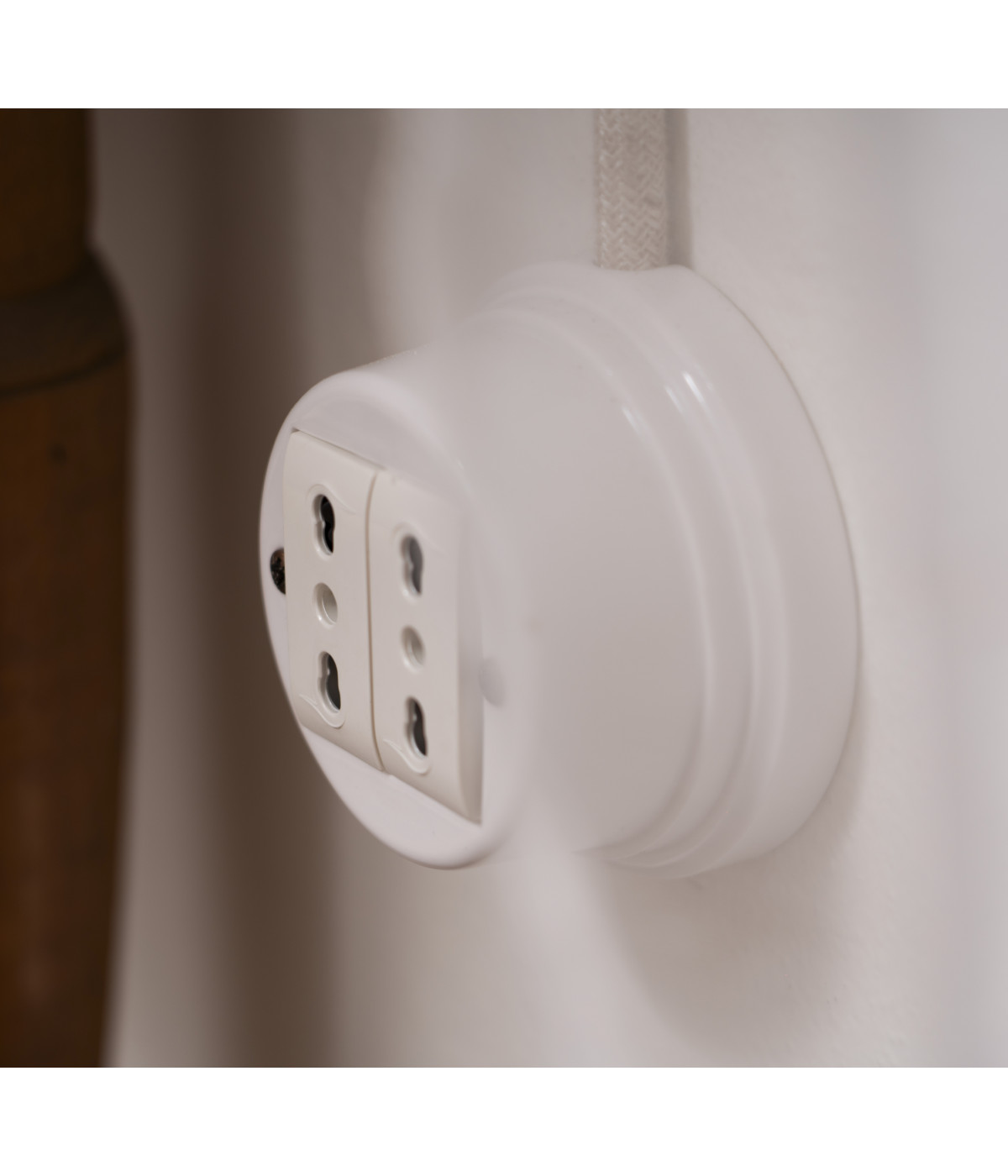 Doppia presa 10/16A 2P+T Bipasso in porcellana bianca