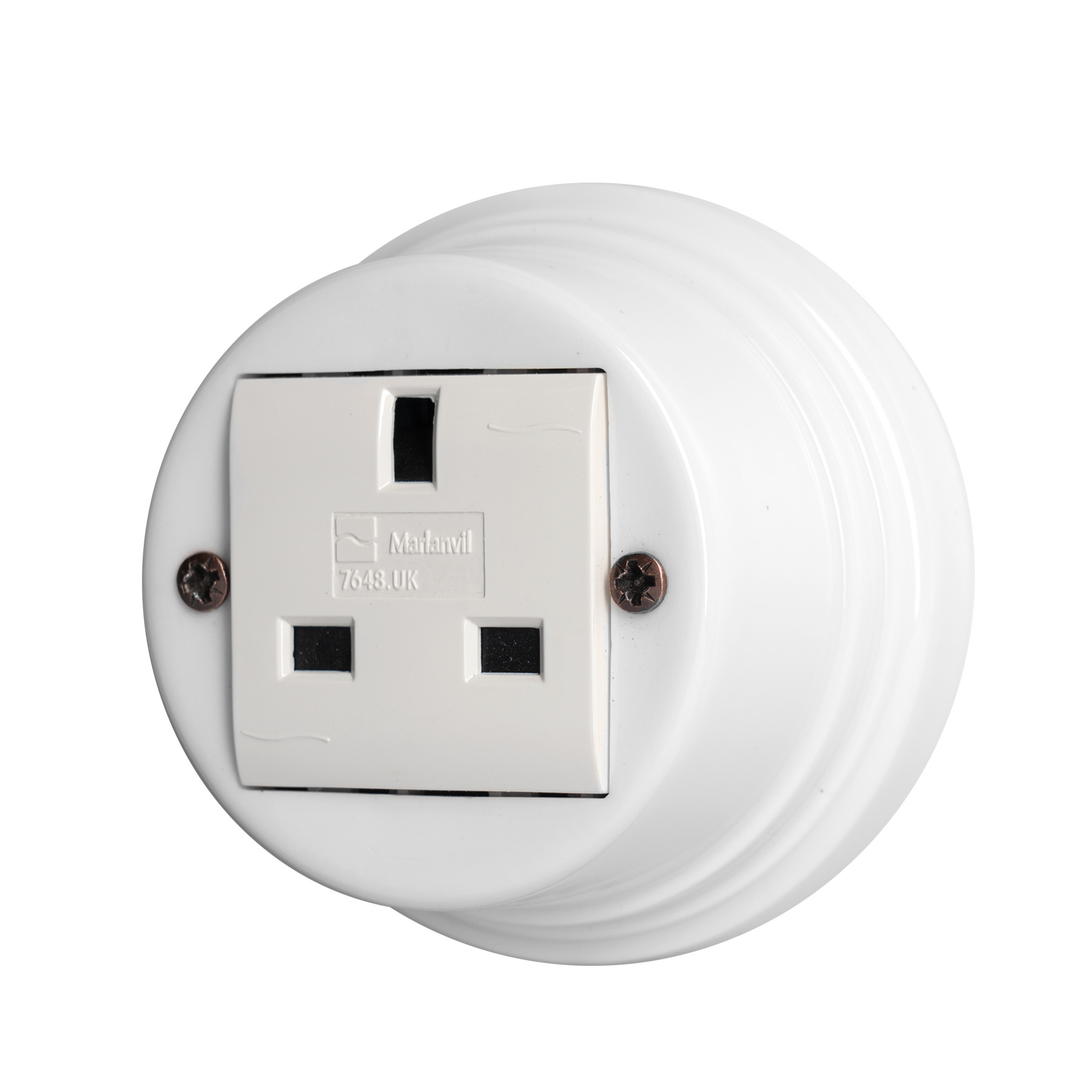 Presa 13A+T Inglese in porcellana bianca