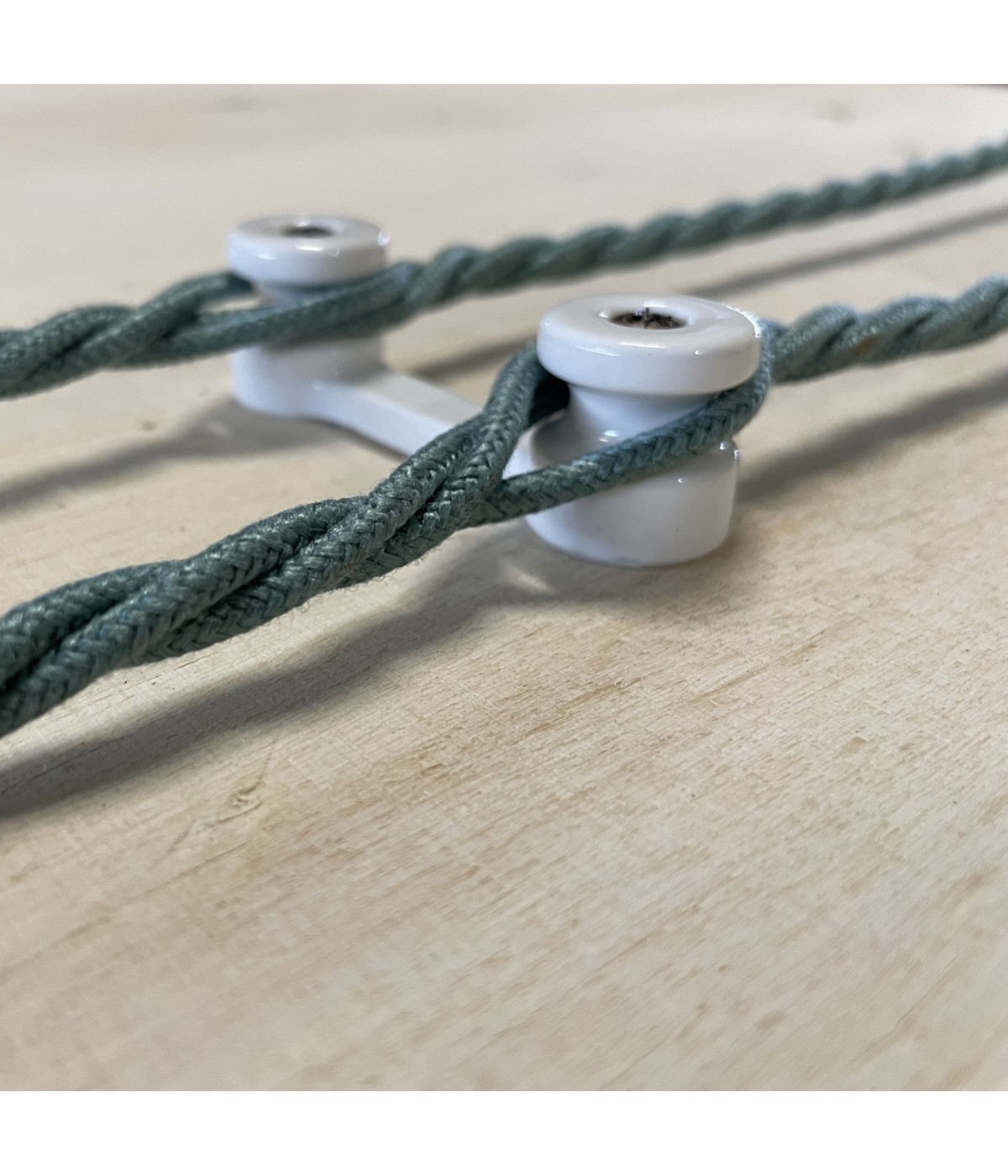Isolatore doppio in porcellana bianca Ø 20mm.