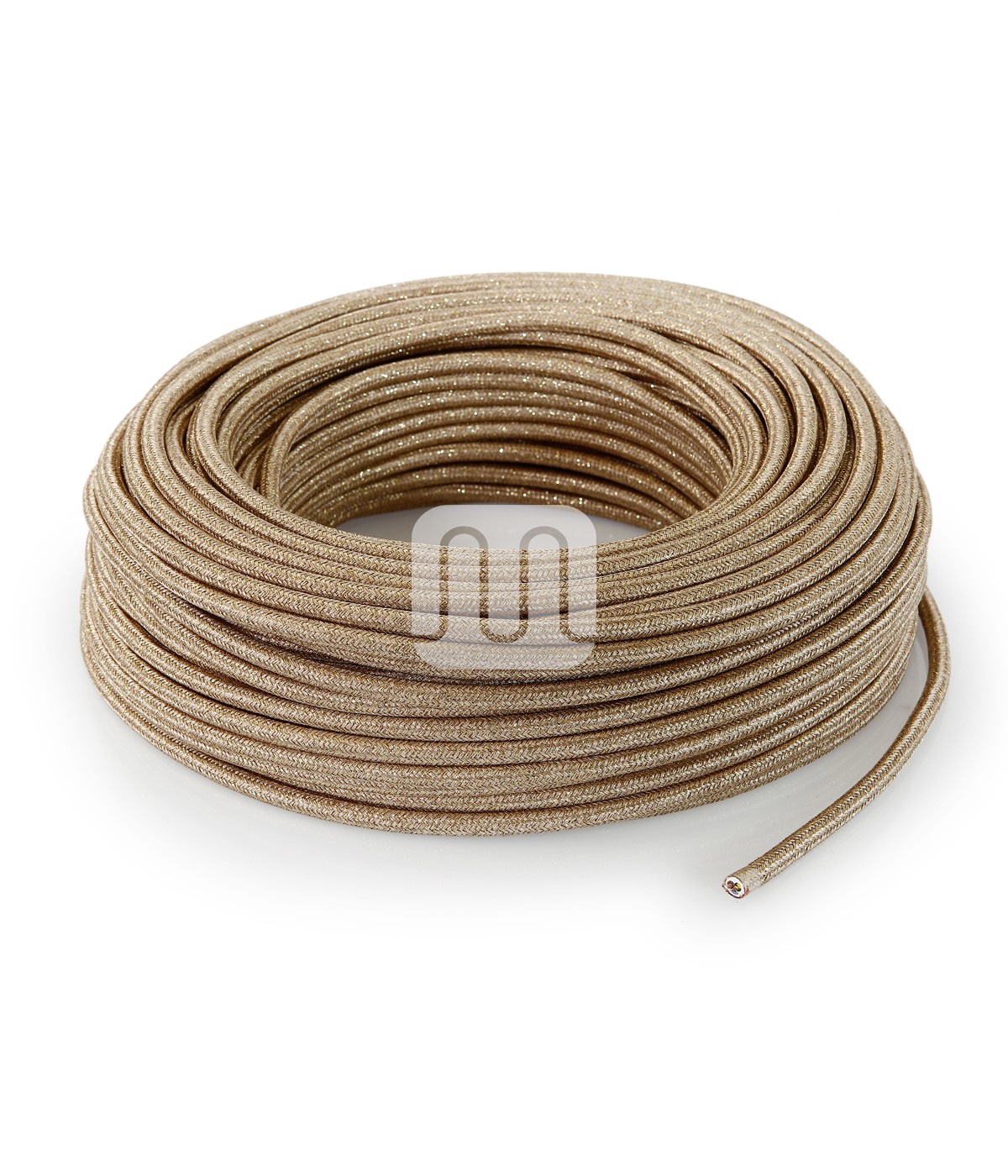 Cavo elettrico flessibile tondo rivestito in tessuto colorato lame' oro.