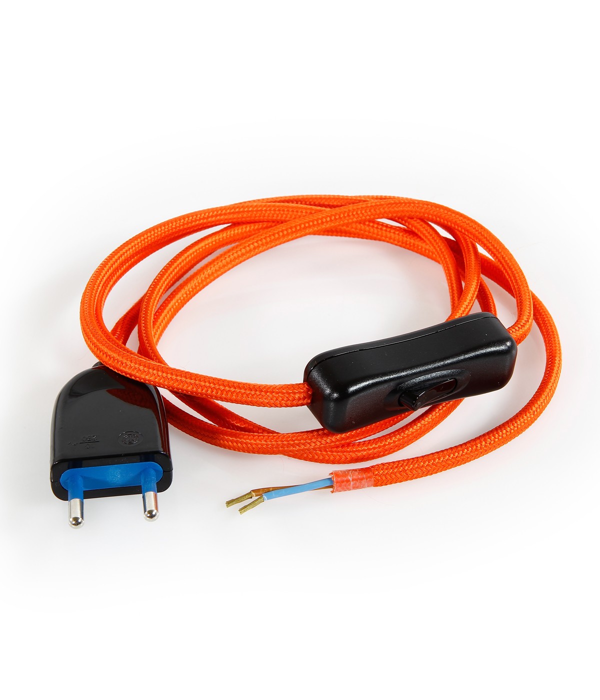 Cablaggio elettrico pronto all’uso con cavo tessile piatto colorato arancio.
