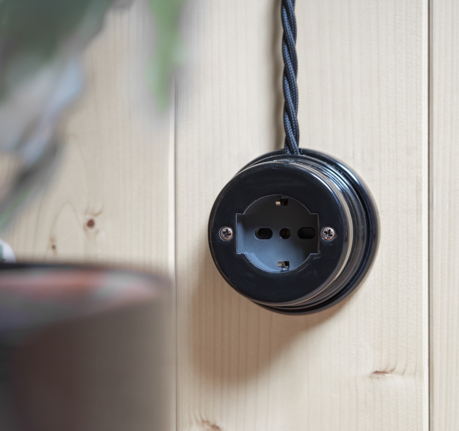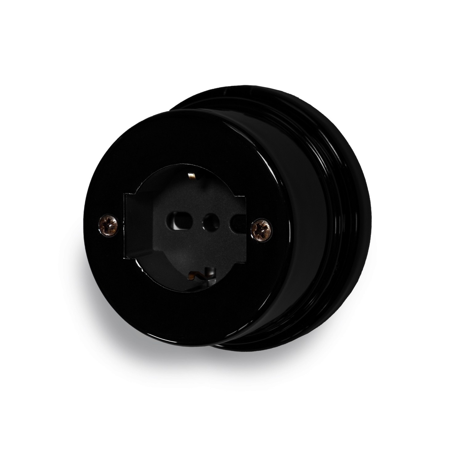 Presa P40 10/16A 2P+T Bipasso/Schuko in porcellana nera.