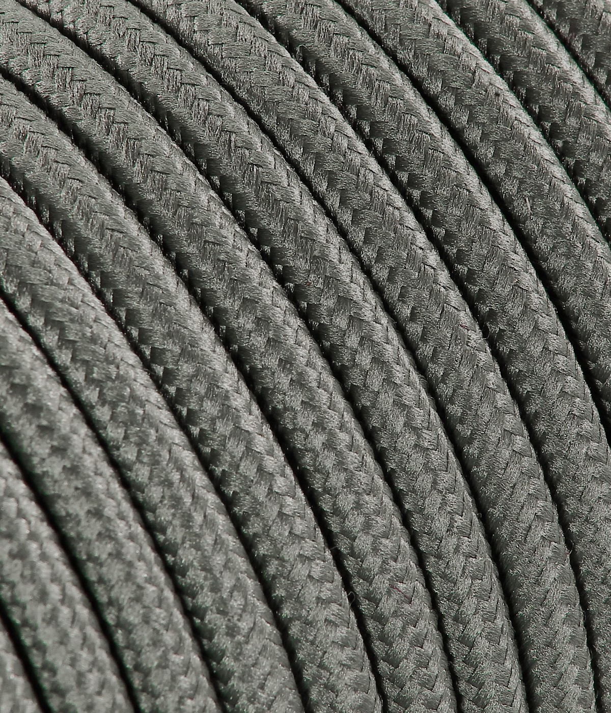 Cavo elettrico flessibile tondo rivestito in tessuto colorato grigio topo.